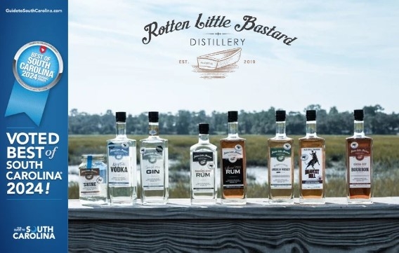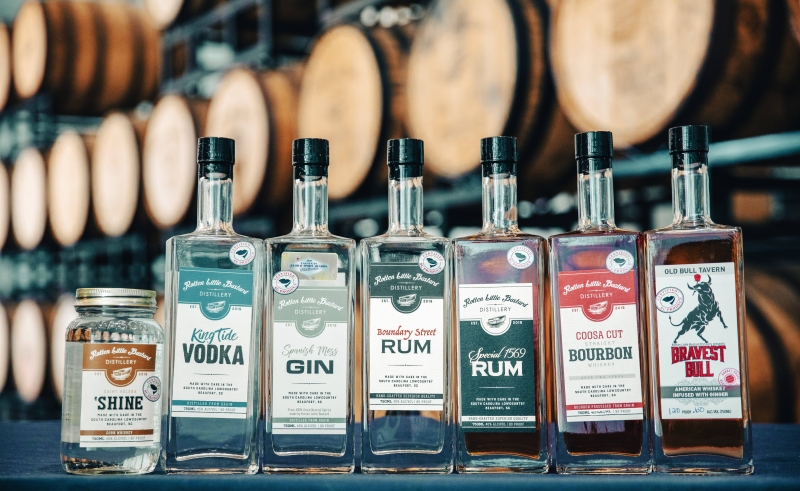 Grain-to-Glass Craft Distillery , SC Certified products, use grains from a local farmer. Our spirits are 100% made at our Beaufort Distillery and include our Saint Helena 'Shine moonshine, Spanish Moss Gin, King Tide Vodka, Coosa Cut Bourbon, Boundary Street Rum, and Bravest Bull American Whiskey with real Ginger.